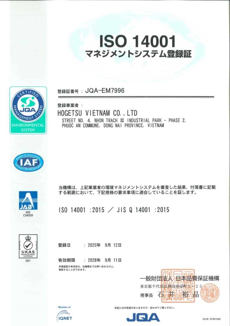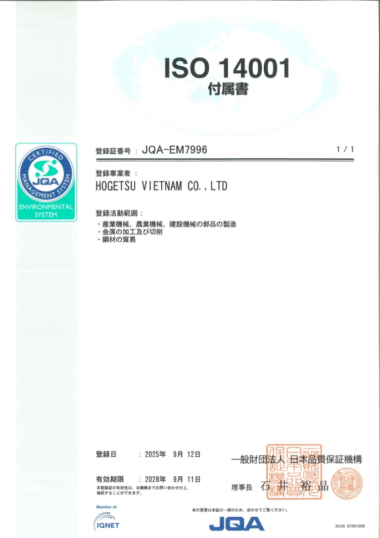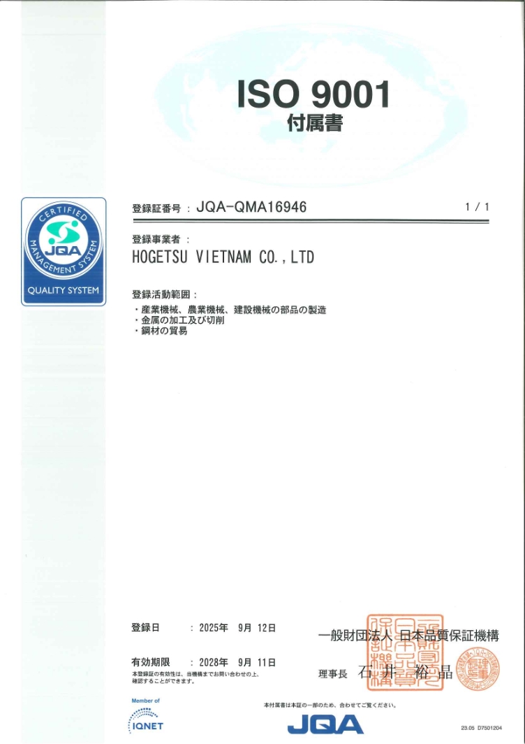 HOGETSU VIETNAMでは、JIS規格の鋼板を在庫し、切断、